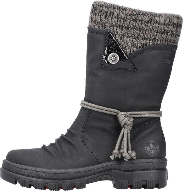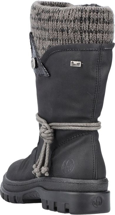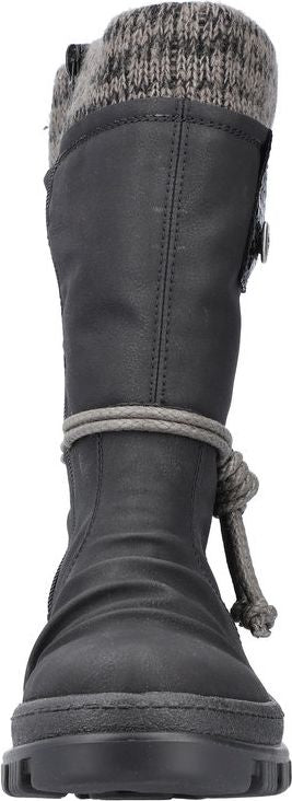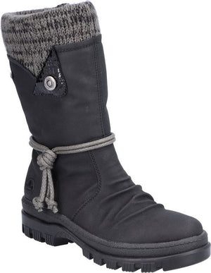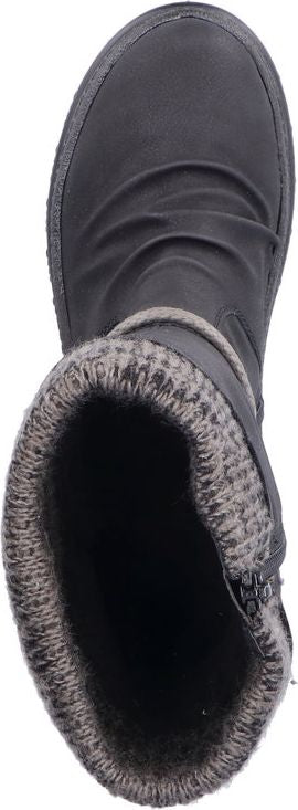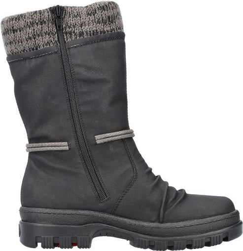 Stay stylish and warm this winter with the Rieker Black Mid Calf Flip Grip Boot. These women's boots are the perfect choice for tackling icy conditions without compromising on style.