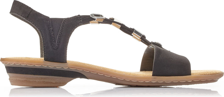 Whether you're attending a casual outing or running errands, these black strappy sandals are the perfect addition to your wardrobe. Pair them with your favourite summer outfit and step out in style. Rieker is a leading European footwear brand known for its exceptional craftsmanship, so you can trust that these sandals are of the highest quality. Choose Rieker for stylish footwear that doesn't compromise on comfort. Make a fashion statement while keeping your feet happy all day long with these Black Strappy Sandals by Rieker. Experience the perfect blend of style and comfort. Shop now and look fabulous this season!