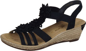 Summer, style and sandals go hand in hand... Or should we say foot in foot? Regardless, you will experience a comfy upper which includes leather straps, and a cushioned footbed in these wedges by RIEKER.