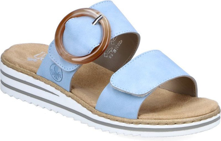 A large, round buckle is the star of this mule design by Rieker. However, it is only used for decorative purposes, because the shoe is conveniently closed with Velcro. Includes shock-absorbing sole.