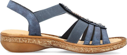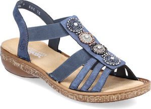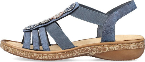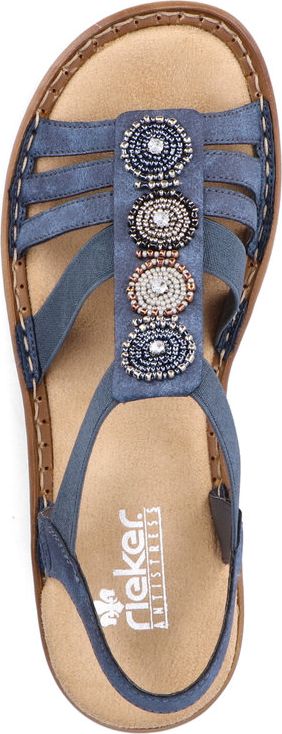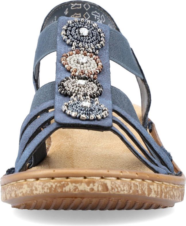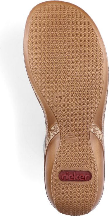 RIEKER enchants us with a new trendy women's sandal that is as beautiful as it is versatile. The straps made of imitation leather were designed with stylish mottling but the design highlight is the pearl embellishment on the instep. The elastic sides help you put on the sandal with ease while providing a close, comfortable fit. Of course, the Rieker sole construction with the synthetic insole ensures total comfort so you don't have to sacrifice the fun.
