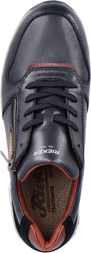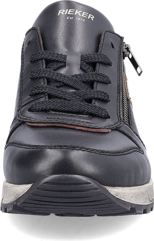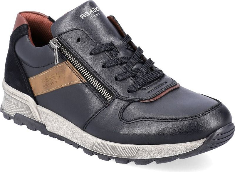 These RIEKER men's shoes will be the right investment for your everyday walking. The leather upper is decorated with a functional zipper and the brand logo on the outside. The lacing and zip ensure easier putting on and fixing of the foot in a way that is comfortable for you. The soft leather insole will guarantee you comfort throughout the day. Feel free to take some comfortable pants with your shoes and hit the streets with your friends.