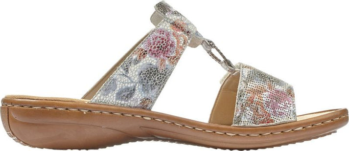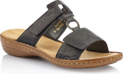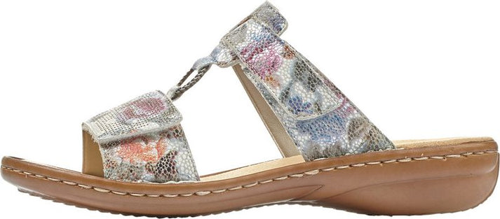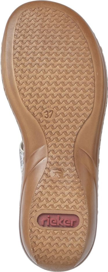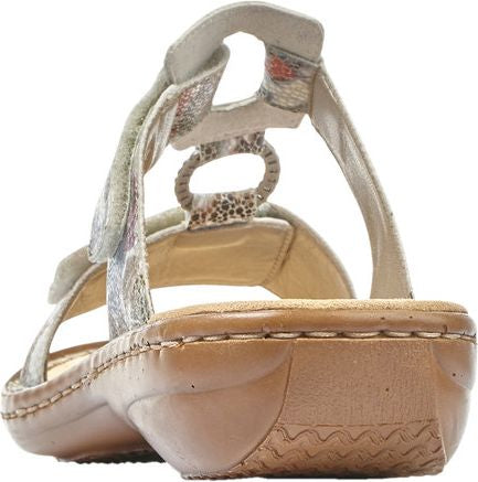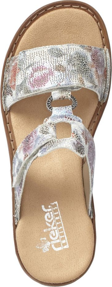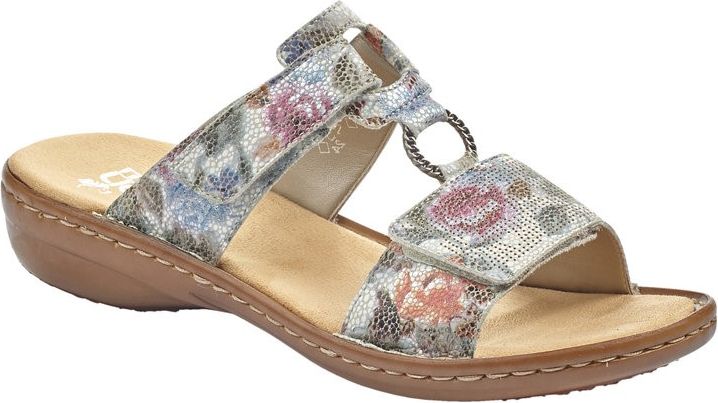 These women's RIEKER open-toe sandals feature a synthetic upper with stitching details for a fun, feminine look. Velcro holds the two straps together, for a snug yet flexible fit. The cushioned footbed is leather covered to help wick away moisture while delivering all day cushion and support.
