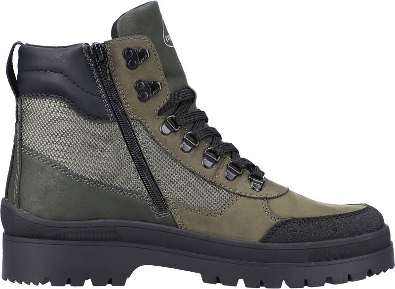 The coolest boots in town? RIEKER EVOLUTION men's boots hands down! These casual leather-look boots have a convenient zipper on the side in addition to the lacing. The cuddle soft inner lining promises all day warm feet. The soft, light, and flexible outsole AND extremely soft and removable insole provide the ultimate comfort feel. Wet feet? Not any more thanks to the TEX membrane!