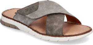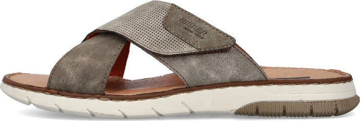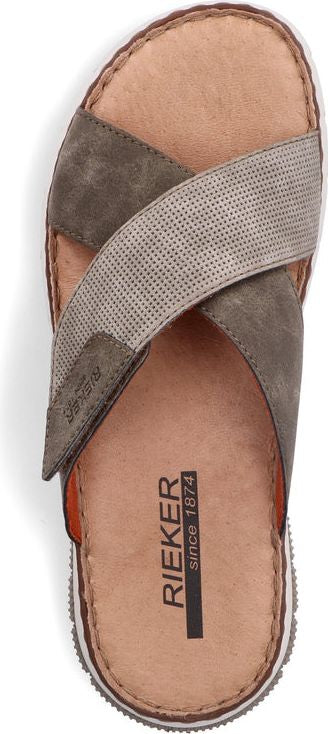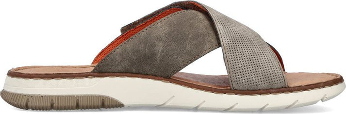 The modern look of these RIEKER Cross Strap Sandal will ensure that you can easily match them with your summer clothes. Wider straps with a smooth and patterned look are cleverly crossed on the instep and one has a Velcro fastener to adjust the circumference of the leg. The soft insole guarantees comfort at every step, and the high-quality two-tone sole is decorated with stitching. You can wear this very comfortable pattern with shorts to work or for regular errands.