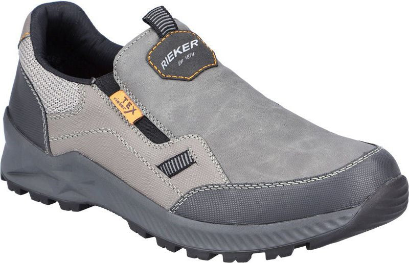 This slip on shoe by RIEKER has double goring for comfort and easy on/off wear plus a TEX membrane to make this sporty style weatherproof.