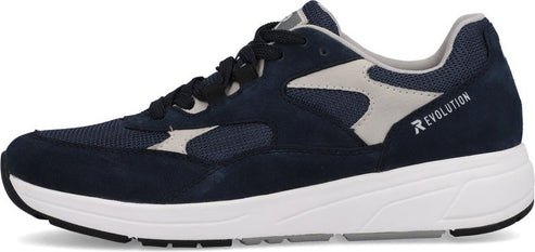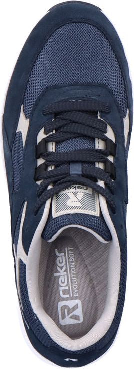 RIEKER NAVY LACE UP is a men's tennis shoe in blue leather and textile. This Rieker Navy Lace Up will be ideal for men who want to adopt a sportswear style. This fully adjustable shoe is equipped with a flexible arch for perfect foot support. More than a style, a "revolution" arrives at your feet, Rieker turns shoes upside down with its R-Evolution range.
