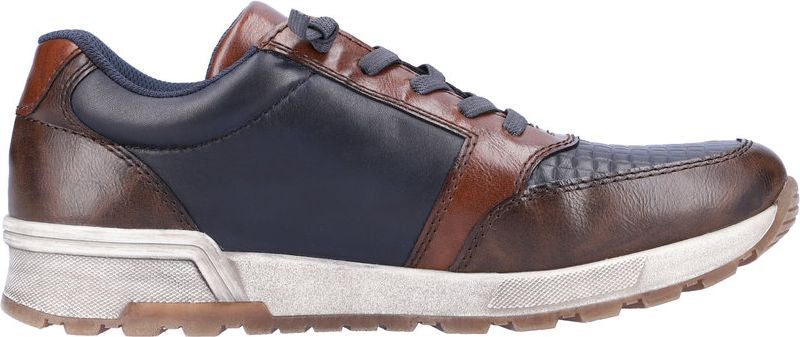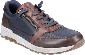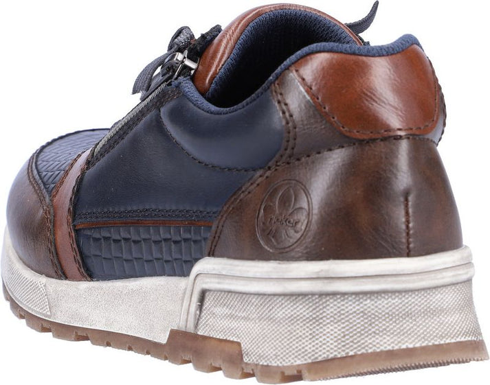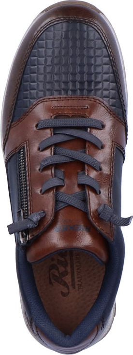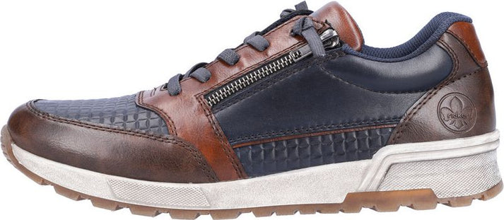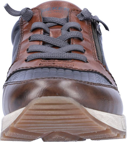 This men's casual shoe by RIEKER offers a sports luxe appearance with textured panels for increased flexibility. The stretch laces offer a flexible fit while a side zip allows for easy fastening. A removable insole allows for extra room and a rubber grooved outsole offers increased traction.