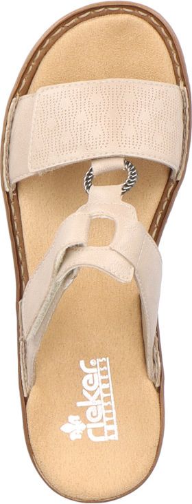 These women's RIEKER open-toe sandals feature a synthetic upper with stitching details for a fun, feminine look. Velcro holds the two straps together, for a snug yet flexible fit. The cushioned footbed is leather covered to help wick away moisture while delivering all day cushion and support.