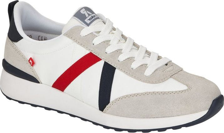 These sporty shoes by RIEKER are made with a combination of leather and synthetic materials, a slightly raised sole, and removable memory foam insole for added comfort.