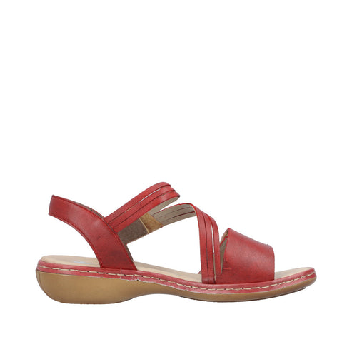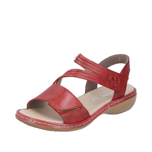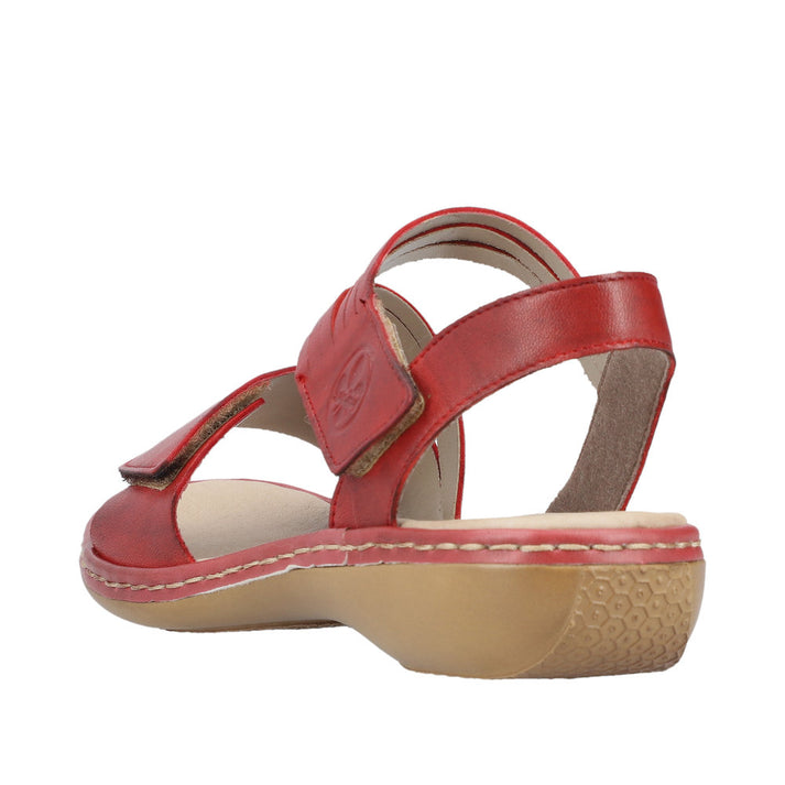 We love red! These Rieker strap sandals made of smooth leather in red are guaranteed to get you into vacation mood. Thanks to the stitchdown construction, this shoe is particularly durable and flexible. The hook and loop fastener allows for a quick entry and keeps the shoe perfectly on the foot. With the shock-absorbing and light sole with wedge heel, your feet will be pampered at every step. Extra support is provided by the slim fit E 1/2. Simply top