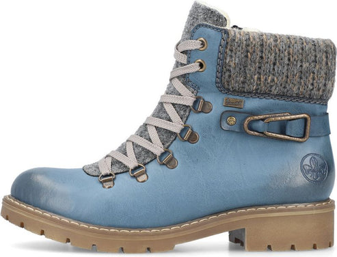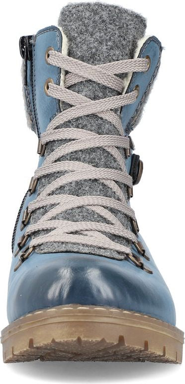 Step into ultimate comfort and style with the Royal Blue Hiker by Rieker. These ladies ankle boots are designed to meet your every need, whether you're exploring the city streets or taking on new adventures.