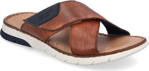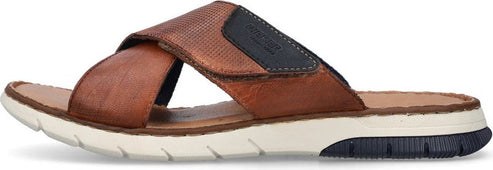 The modern look of these RIEKER Cross Strap Sandal will ensure that you can easily match them with your summer clothes. Wider straps with a smooth and patterned look are cleverly crossed on the instep and one has a Velcro fastener to adjust the circumference of the leg. The soft insole guarantees comfort at every step, and the high-quality two-tone sole is decorated with stitching. You can wear this very comfortable pattern with shorts to work or for regular errands.