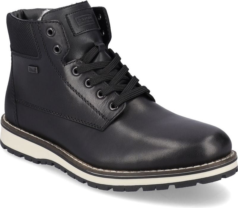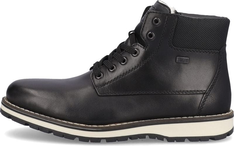 Upgrade your footwear collection with the Warm Lined Lace Up Black from Rieker. This sleek and stylish boot combines fine stitching with a smooth material upper that showcases the brand's printed logo. A textile edging on the upper edge adds a touch of elegance, while a special tex membrane ensures waterproof protection without compromising breathability.