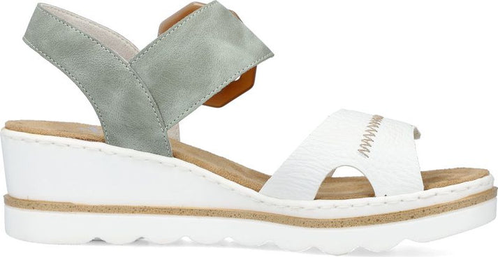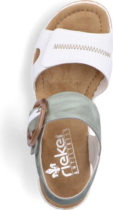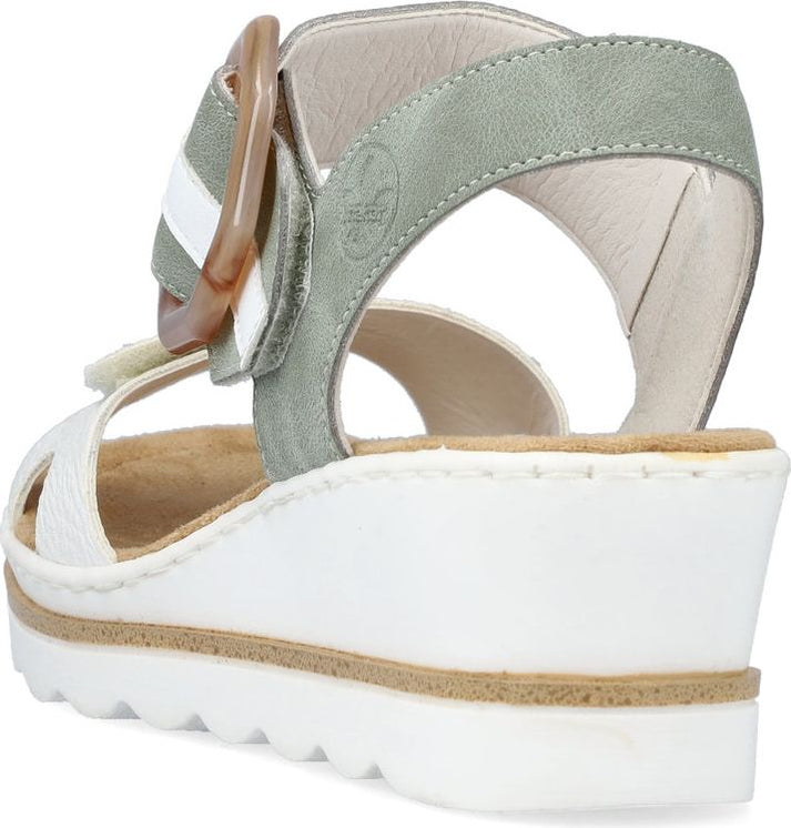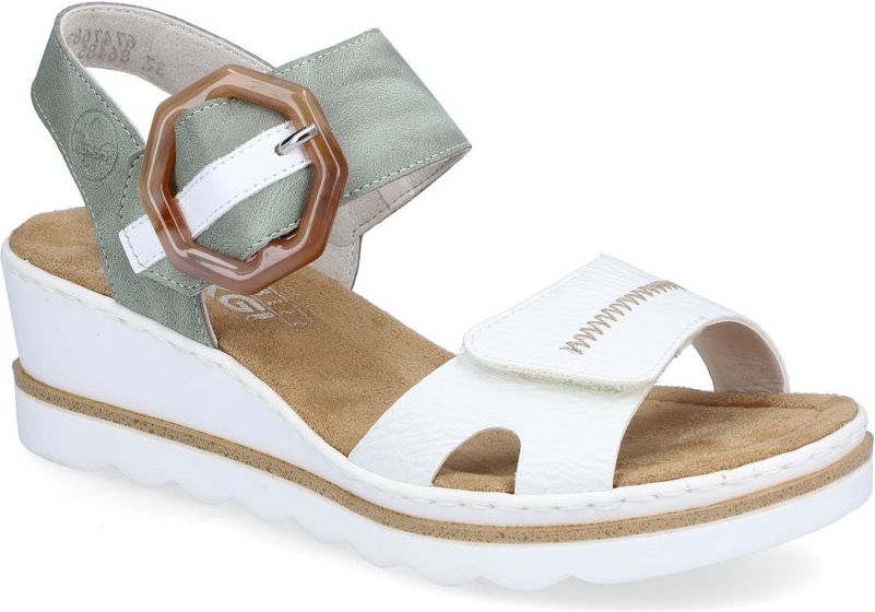 Embrace the summer vibes and make a statement with Rieker's White/mint Wedge With Buckle sandals, where style meets comfort effortlessly. Step out in confidence and enjoy the warm months with these fashion-forward sandals. Grab your pair today and experience the exceptional craftsmanship Rieker is known for.