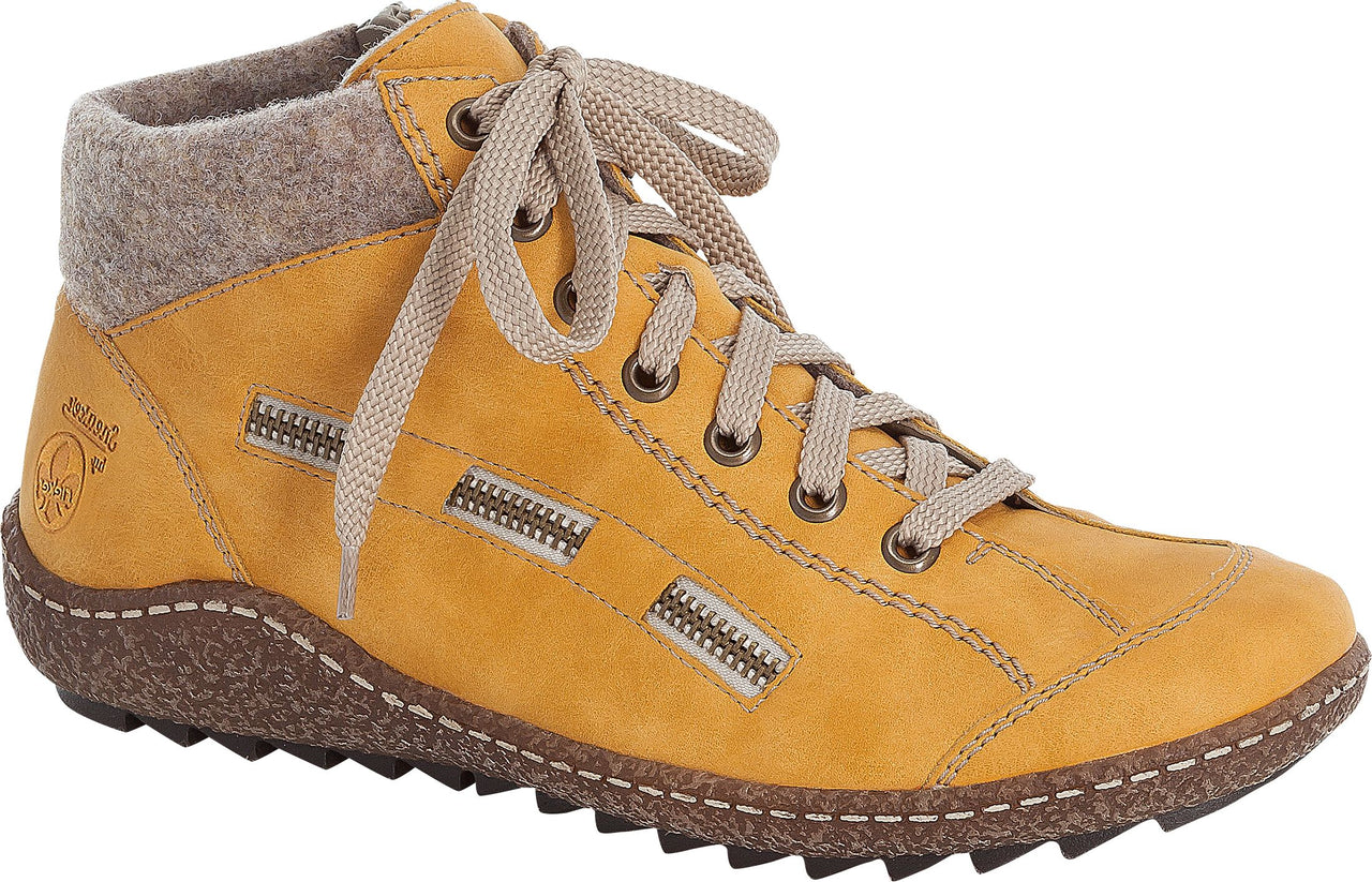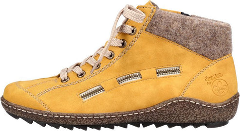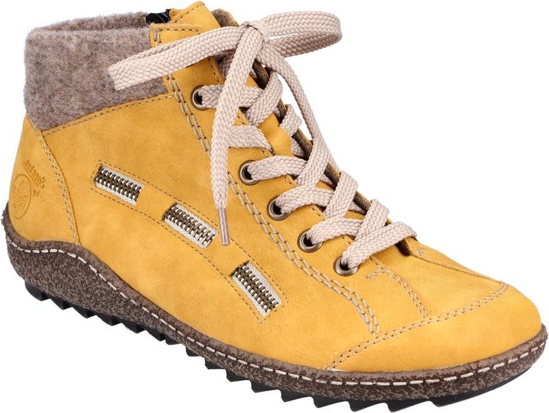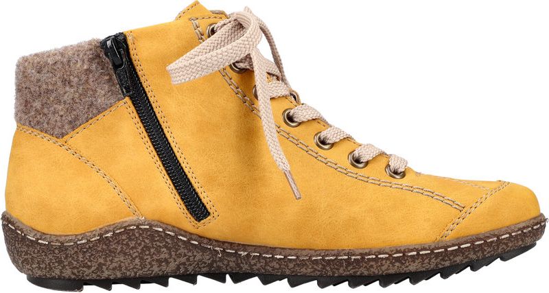 Stay stylish without sacrificing comfort this season with these Yellow Lace Up Boots from RIEKER! Crafted with exceptional craftsmanship and attention to detail, these boots are the perfect blend of style and comfort. The synthetic upper provides durability and a trendy look, while the velour lining adds a touch of luxury. With a zip and lace closure, these boots offer a secure fit and easy on/off.