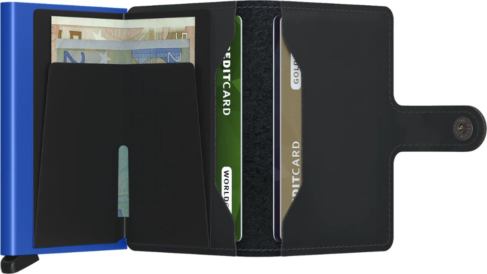 The perfect all-rounder; small in size and surprisingly large in storage capacity, the Miniwallet combines the best of both worlds. The exterior holds banknotes, receipt and cards, while the aluminium Cardprotector allows you to slide out cards with one simple motion and protects them from bending, breaking and unwanted wireless communication.