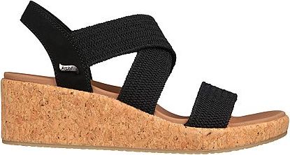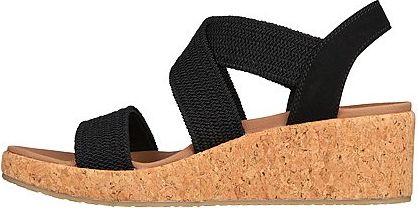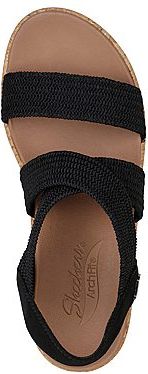 Feminine style and absolute comfort combine in the Arch Fit® Beverlee - Love Stays by SKECHERS. This strappy slip-on style wedge sandal features a stretchable woven upper with an Arch Fit® footbed.