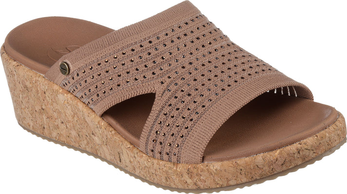 Easy-wearing comfort and support combine in Skechers Arch Fit® Beverlee - Sweet Lacey. This slide wedge sandal features an embellished knit mesh upper with cutout sides and an Arch Fit® footbed.