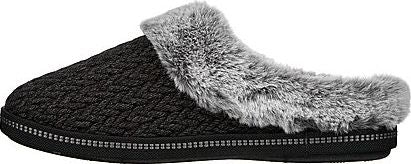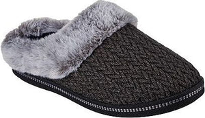 Enjoy laid-back cozy comfort all season long with the Cozy Campfire - Cozy Times by SKECHERS. This casual comfort slipper features a sweater knit upper in a chevron pattern with faux-fur trim and a cushioned Skechers Memory Foam™ comfort insole.