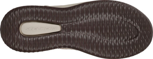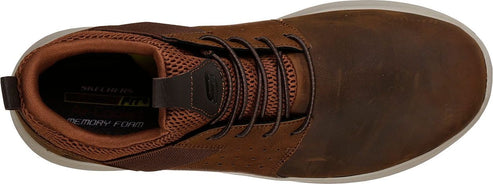 Versatile style and very easy wearing comfort come together in the SKECHERS Delson - Axton shoe. Smooth leather upper with mesh fabric detail in a slip on laced-front sporty casual comfort sneaker oxford with stitching and overlay accents. Air Cooled Memory Foam insole, flexible comfort midsole.