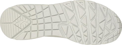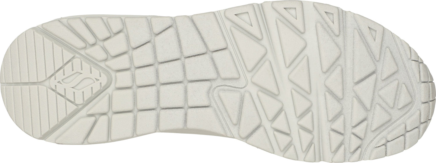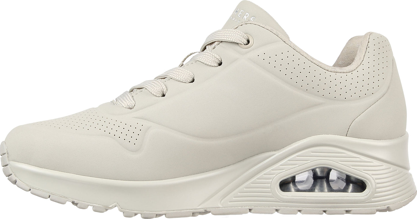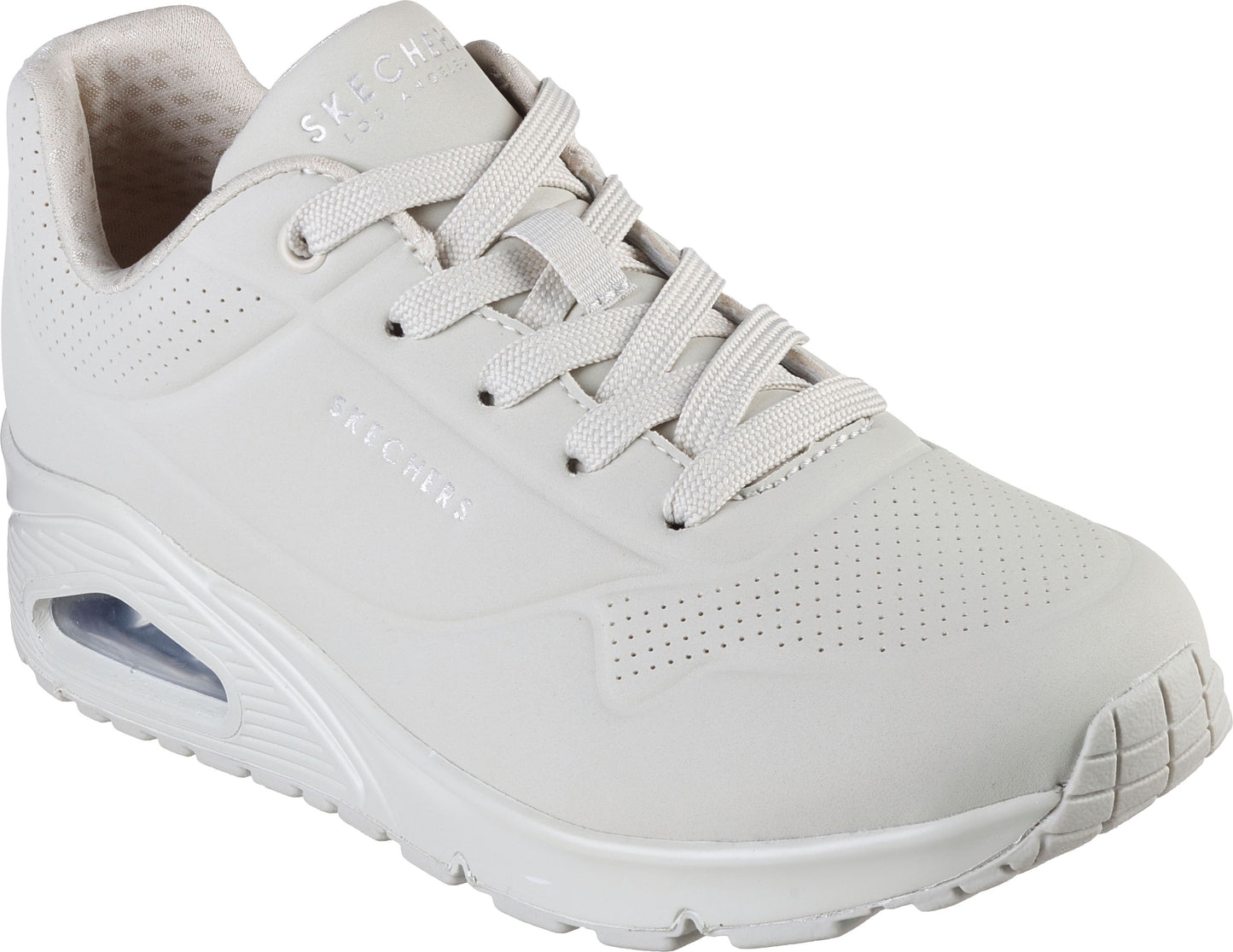 Classic air cushioned style meets updated comfort in the SKECHERS Uno - Stand on Air shoe. Smooth leather-textured synthetic upper in a lace up classic jogger style sneaker with stitching and perforation accents. Air Cooled Memory Foam insole, visible air cushioned midsole.