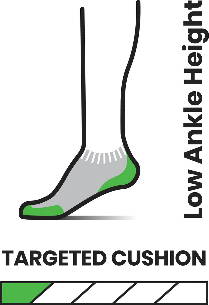 Whether you run on a treadmill, on a sidewalk, on a track, or on a trail, your feet should stay as comfortable as possible. These low ankle socks by SMARTWOOL are built to help with that. They offer a performance-oriented fit, breathability, and reduced slippage. Plus, their Indestructawool™ technology helps them last through the miles, and the targeted cushioning on the ball and heel of the foot add just the right support. And because they’re made with ZQ-certified Merino wool, they’re comfortable and odor-resistant. For better comfort on your next run, choose our Run Targeted Cushion Low Ankle sock.