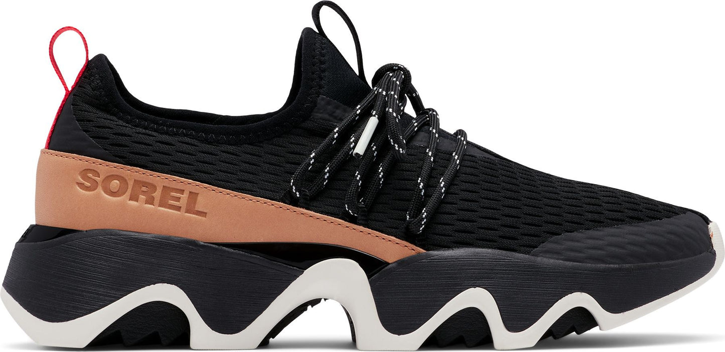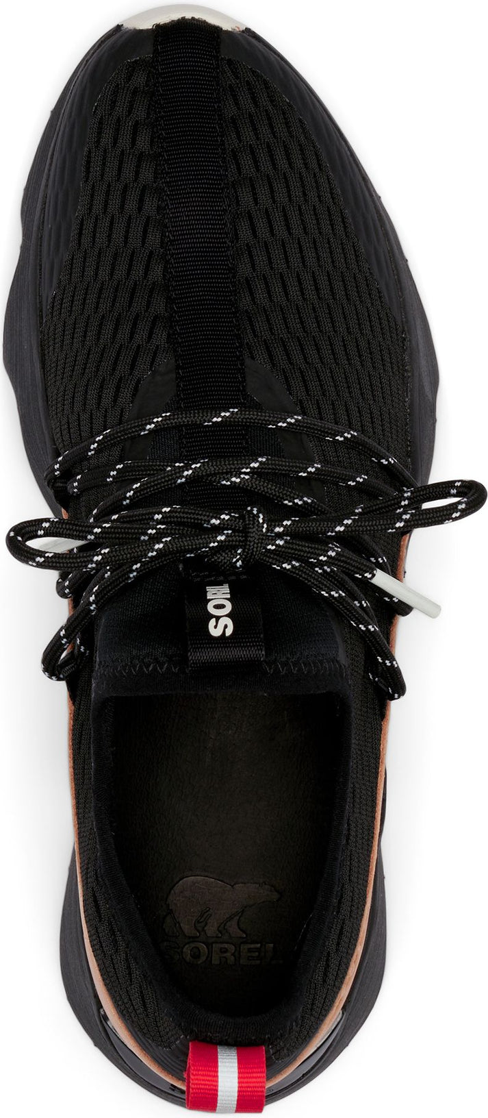 - UPPER: Breathable mesh in a bootie construction with lace detail for a secure fit. Webbing detail down vamp with a pull tab in heel and front collar. Leather rand with SOREL logo.