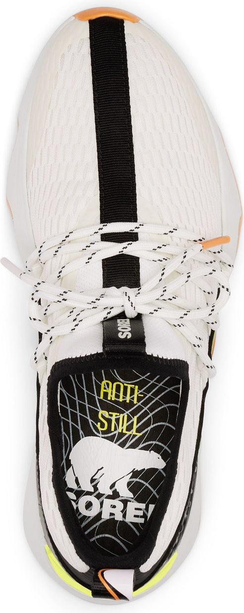 - UPPER: Breathable mesh in a bootie construction with lace detail for a secure fit. Webbing detail down vamp with a pull tab in heel and front collar. Leather rand with SOREL logo.
