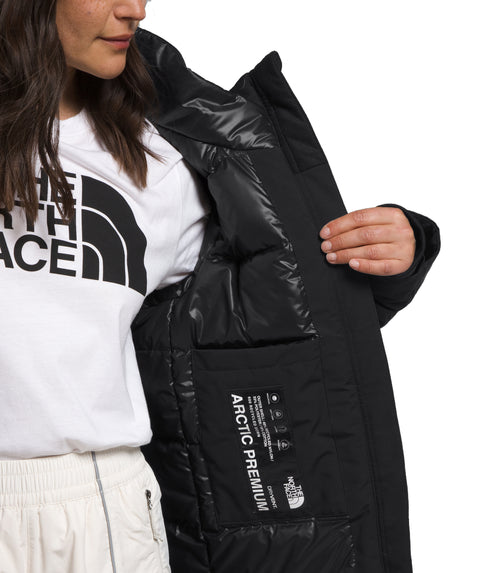 As a new addition to our much-loved Arctic Parka line, the Women’s Arctic Parka Premium has our maximum length for total coverage, dual-entry handwarmer pockets and an internal strap for easy carrying. It's constructed from waterproof, breathable DryVent™ fabric, and filled with warm, 600-fill recycled down insulation.