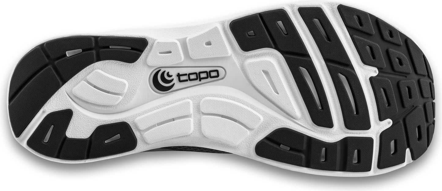 Strengthen your body with ST-4 by TOPO ATHLETIC, built to deliver lightweight, natural performance for in the gym or on the run. The zero drop 16 mm platform provides a minimal, flexible fit for optimized ground feel and natural foot mechanics. The breathable mesh upper keeps the foot cool, while printed overlays and an internal skeleton lining offer increased security throughout. The relaxed heel construction provides a more natural fit and allows the shoe to pack flat in a gym bag or for travel. A newly added OrthoLite® footbed provides long-term comfort and odor resistance in these lightweight men's running shoes.