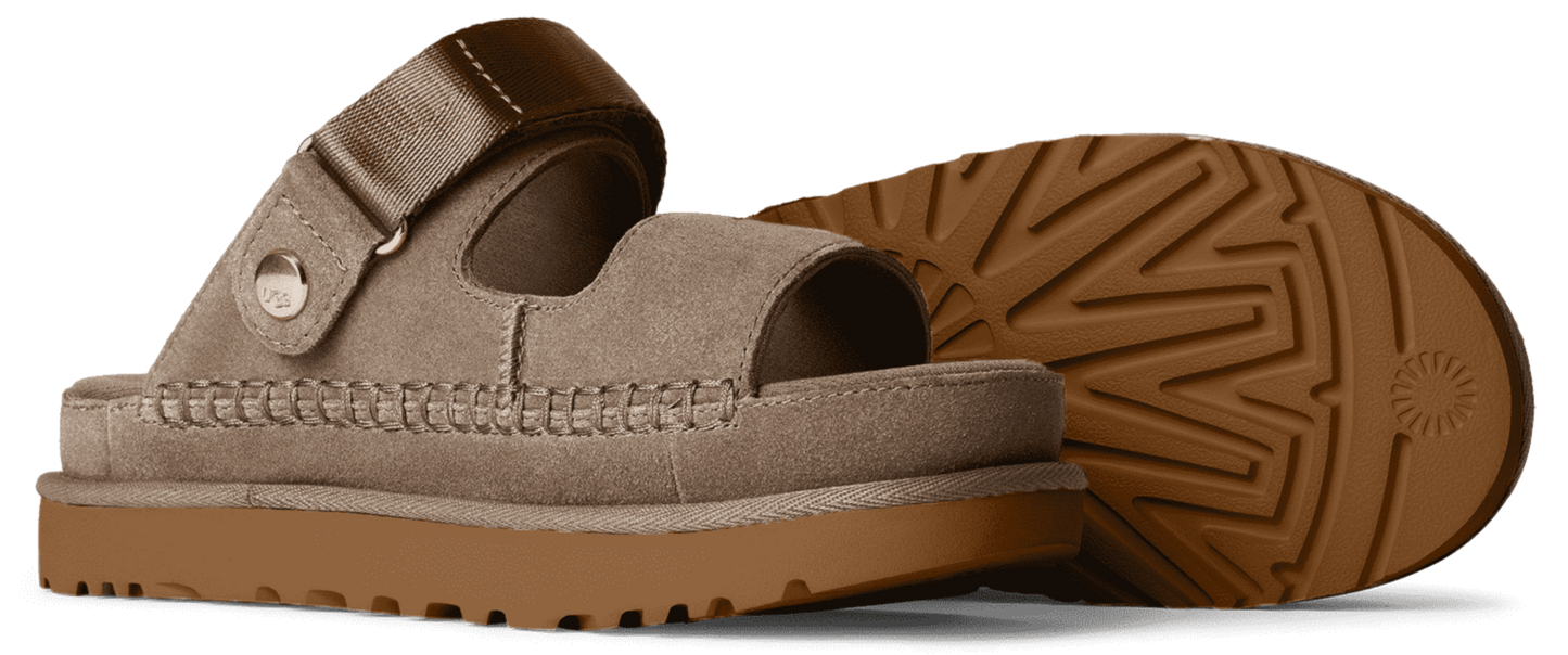 Ready, set, glide. Our Goldenstar Glide brings convertible comfort to all of your sunny-day excursions. It's designed with an adjustable heel strap that can flip to the front for slide-like access when you're on the go. The contoured footbed is lined with soft, recycled material infused with an anti-odor treatment to keep you feeling fresh. From the rich suede upper to the renewable sugarcane EVA sole, the Goldenstar Glide is headed straight for your 'favorites' line-up.
