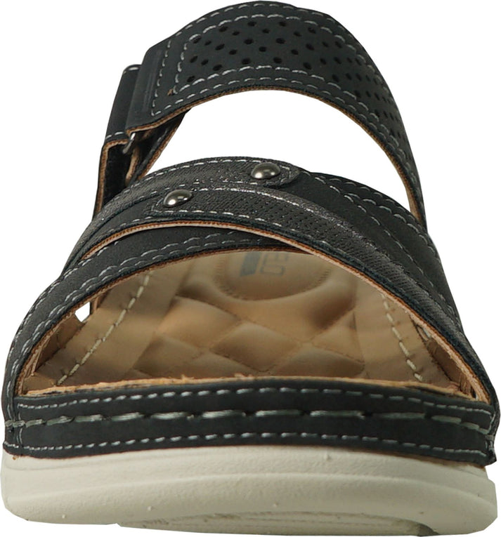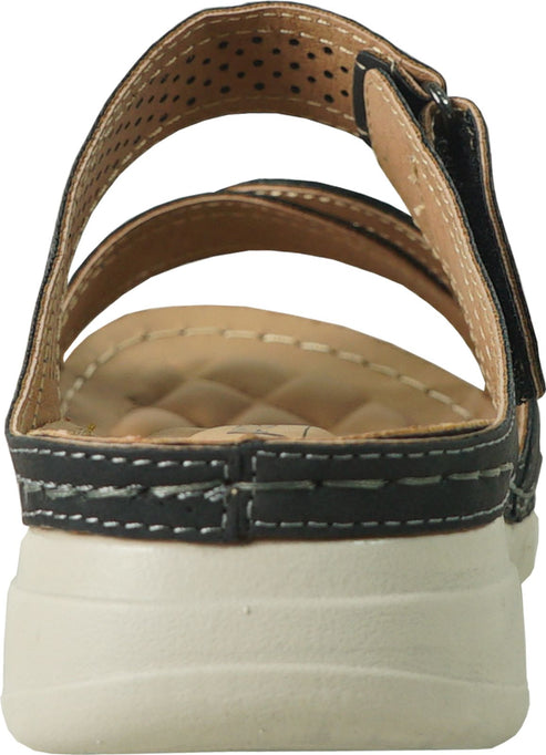- Premium faux leather upper wedge sandal features an open toe with adjustable hook and loop fastener at instep strap