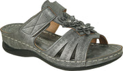 - Premium faux leather upper wedge sandal features an open toe with adjustable hook and loop fastener at instep strap